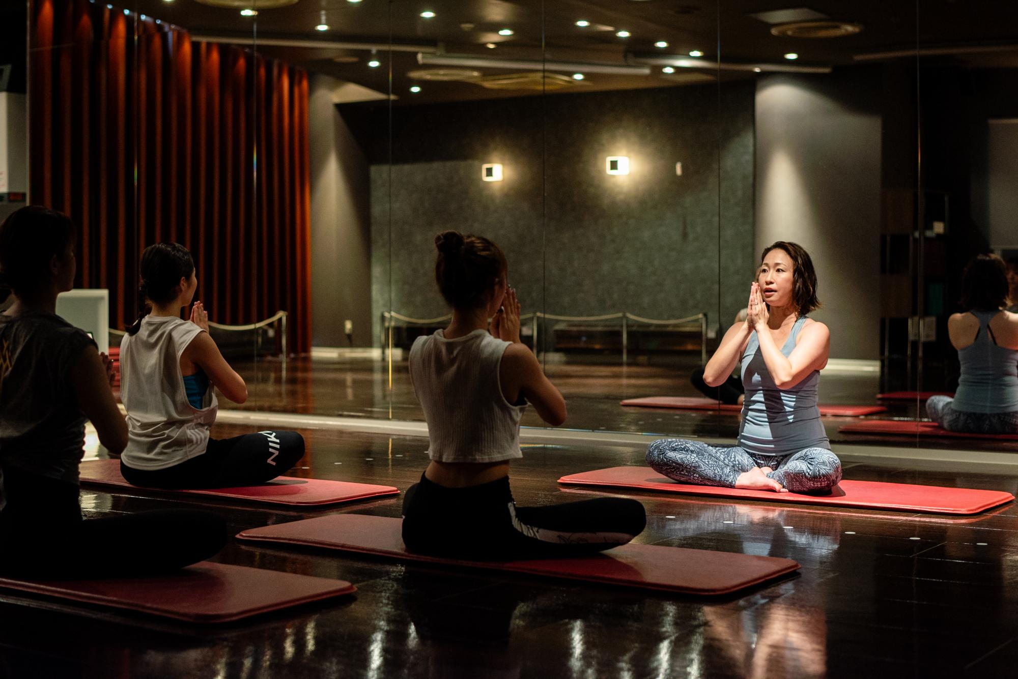 スタジオ: ヨガ、エアロビクス、ダンスなどのレッスンが行われる場所。