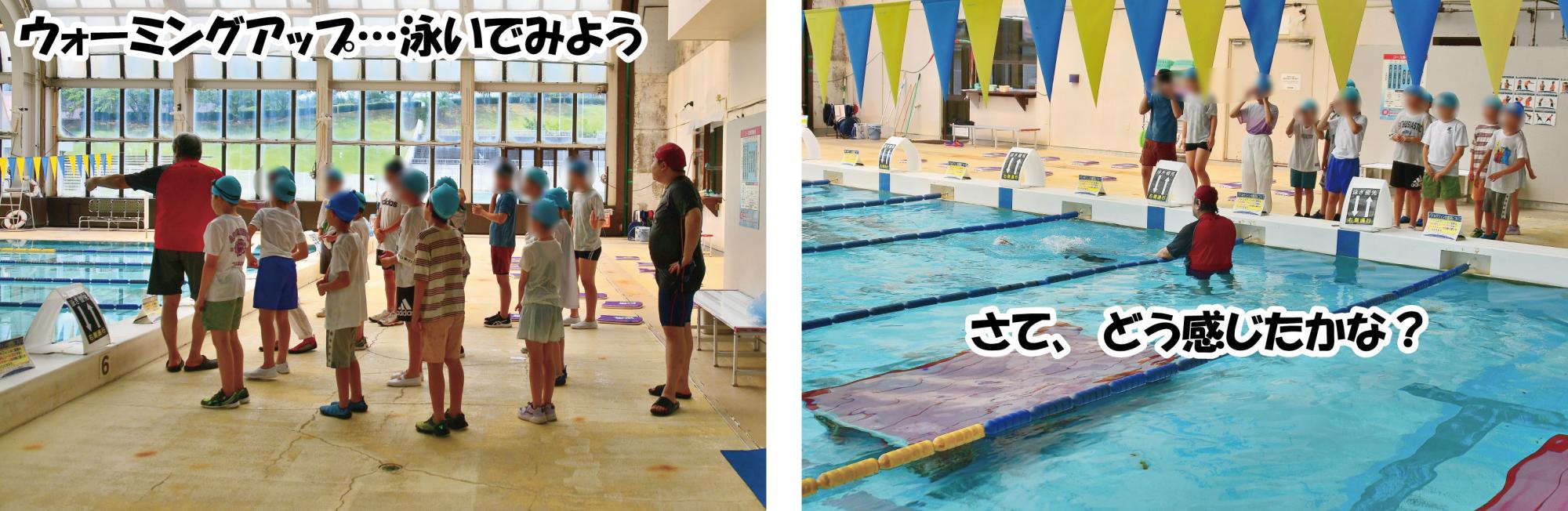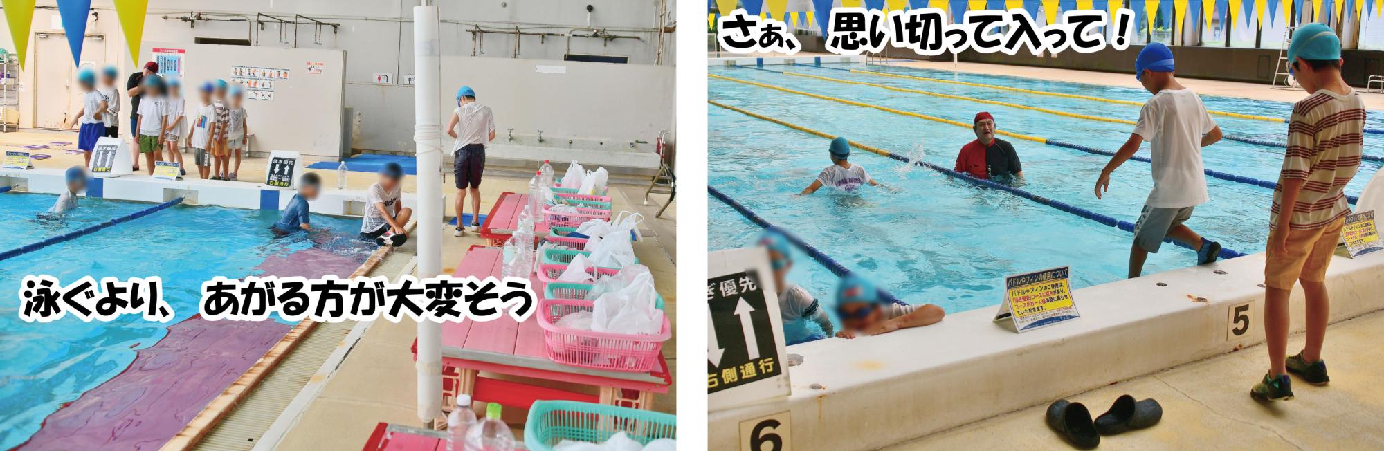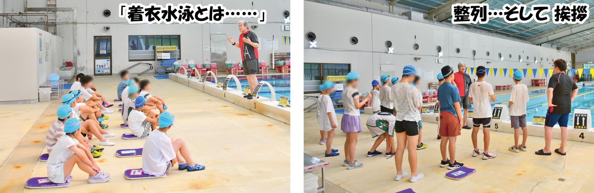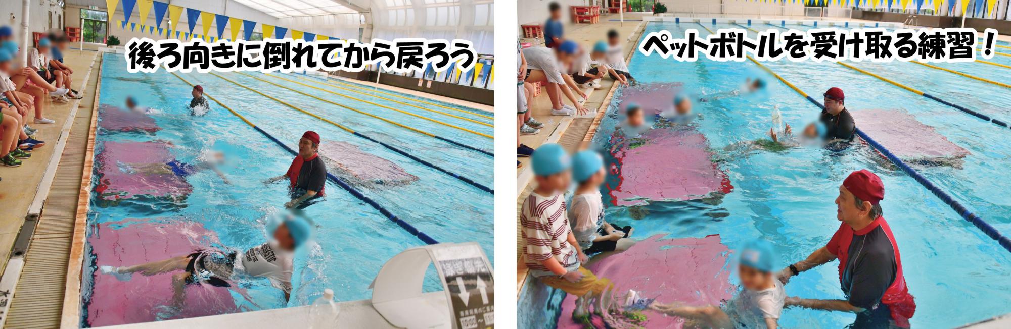 平服のまま水に落ちたり流されたりしたときに、自分を守る方法として着衣水泳を実施しました。