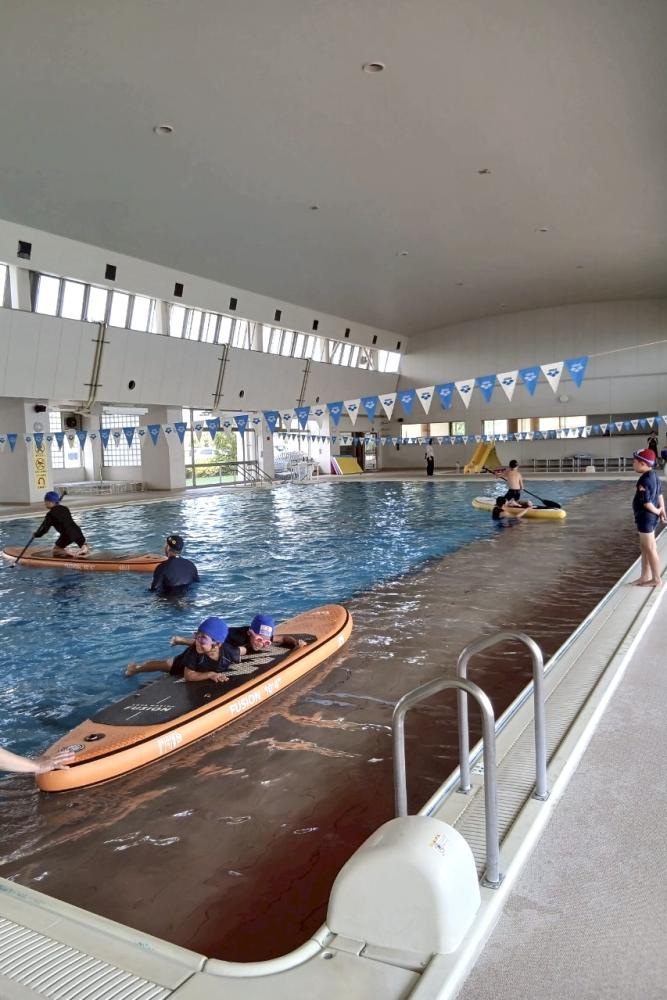着衣泳教室とウォーターローラーやSUPなど、いつものレッスンとは違うプールの楽しみ方を満喫してくれたようです。