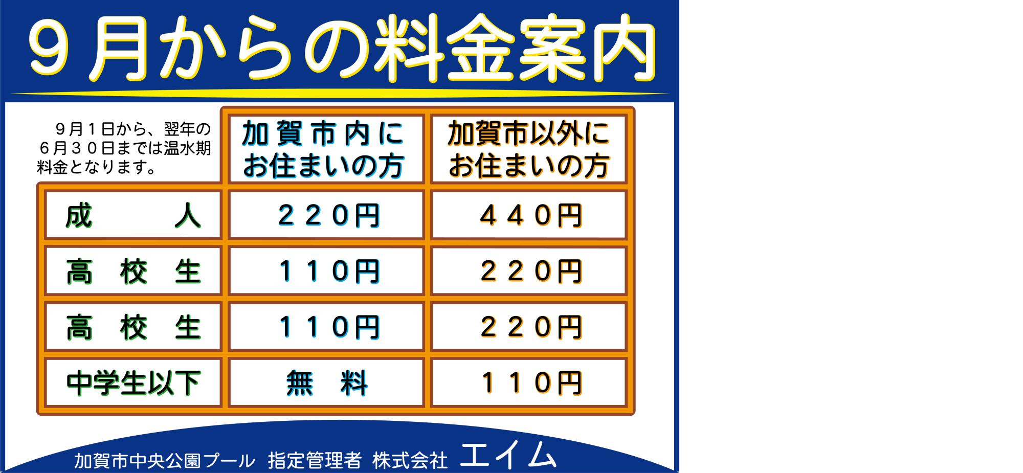7月と8月の夏季(平水期)期間が終了するとともに、利用料金が冬期(温水期)料金となります。