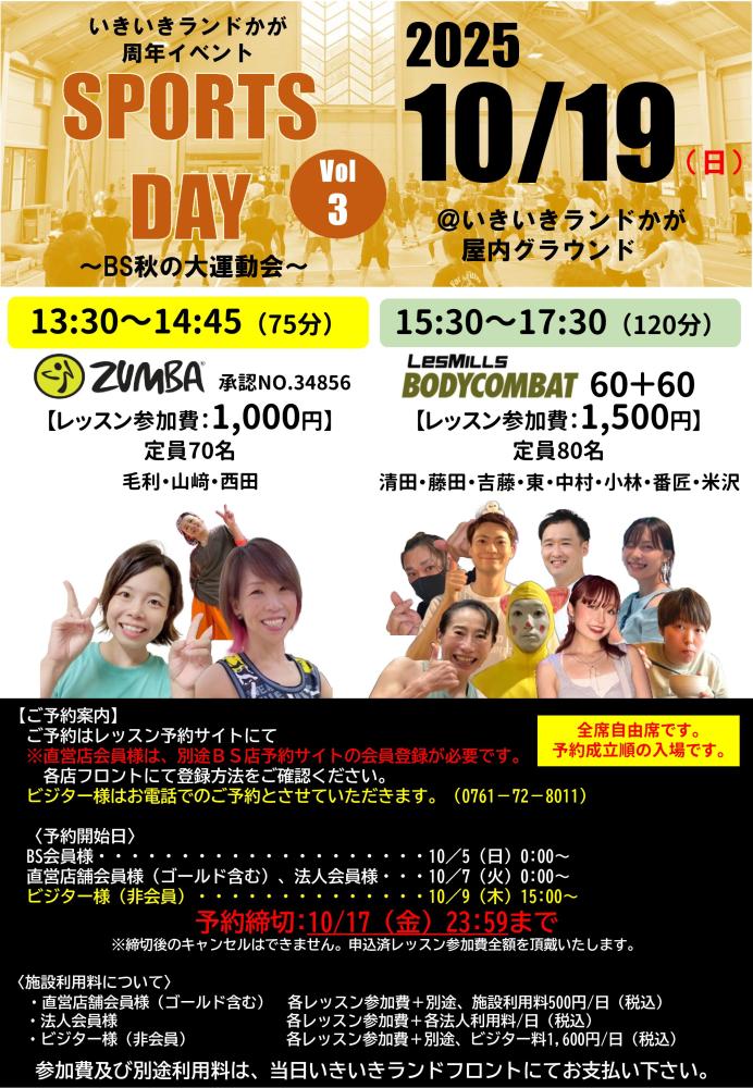 スポーツデイ参加にはご予約・レッスン参加費が必要となります。