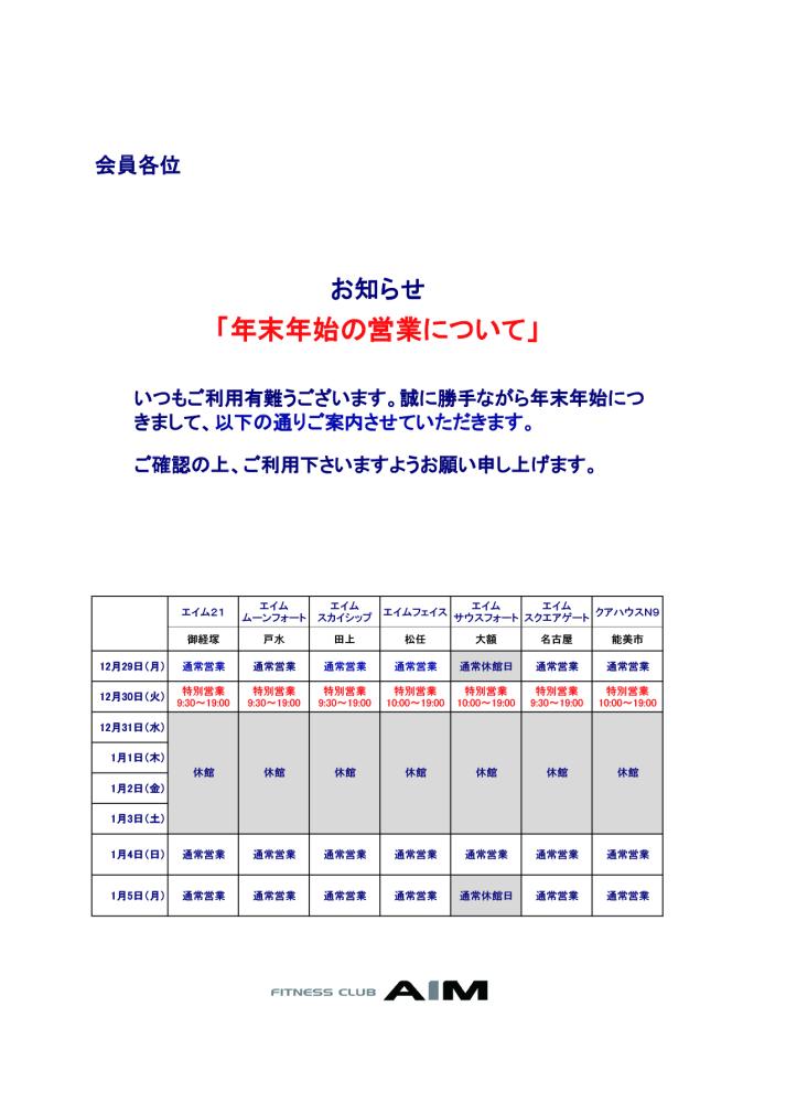 【お知らせ】年末年始の営業について