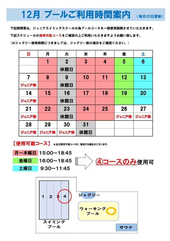 12月 プールご利用時間案内