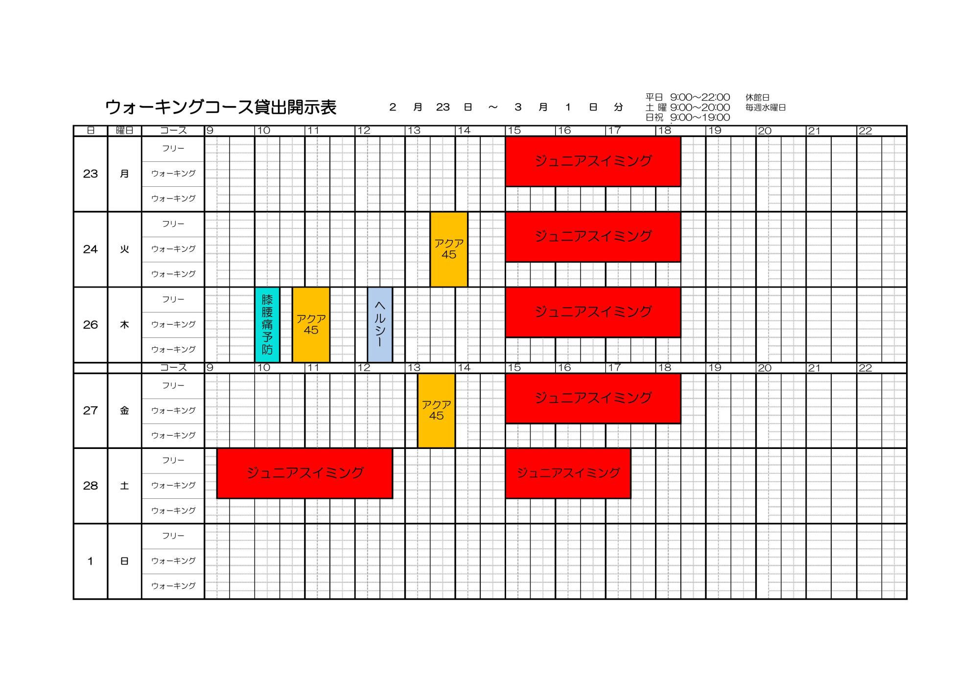 2月23日~3月1日 プールコース開示表