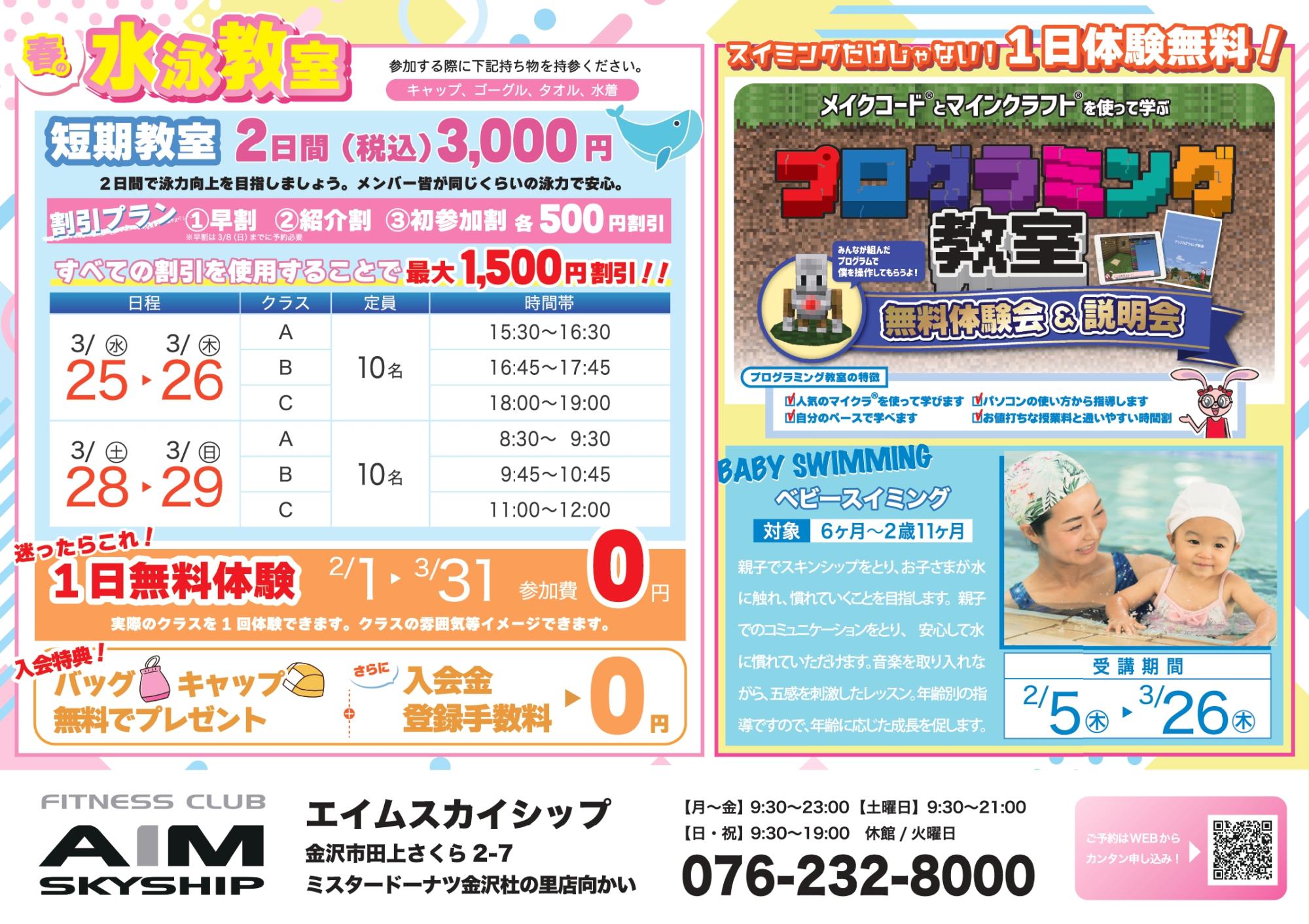 ジュニアスクール春の体験教室申込受付開始しました!(スイミング・プログラミング)