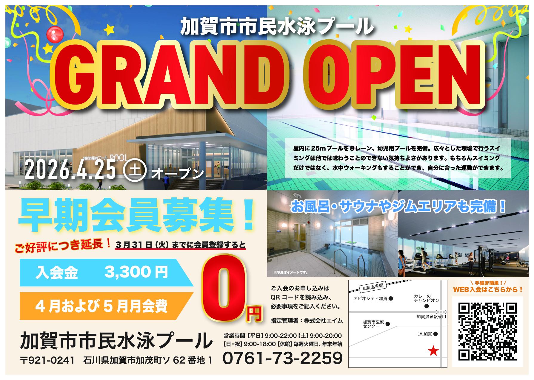 【GRAND OPEN】4/25(土)に加賀市市民水泳プールがオープン!