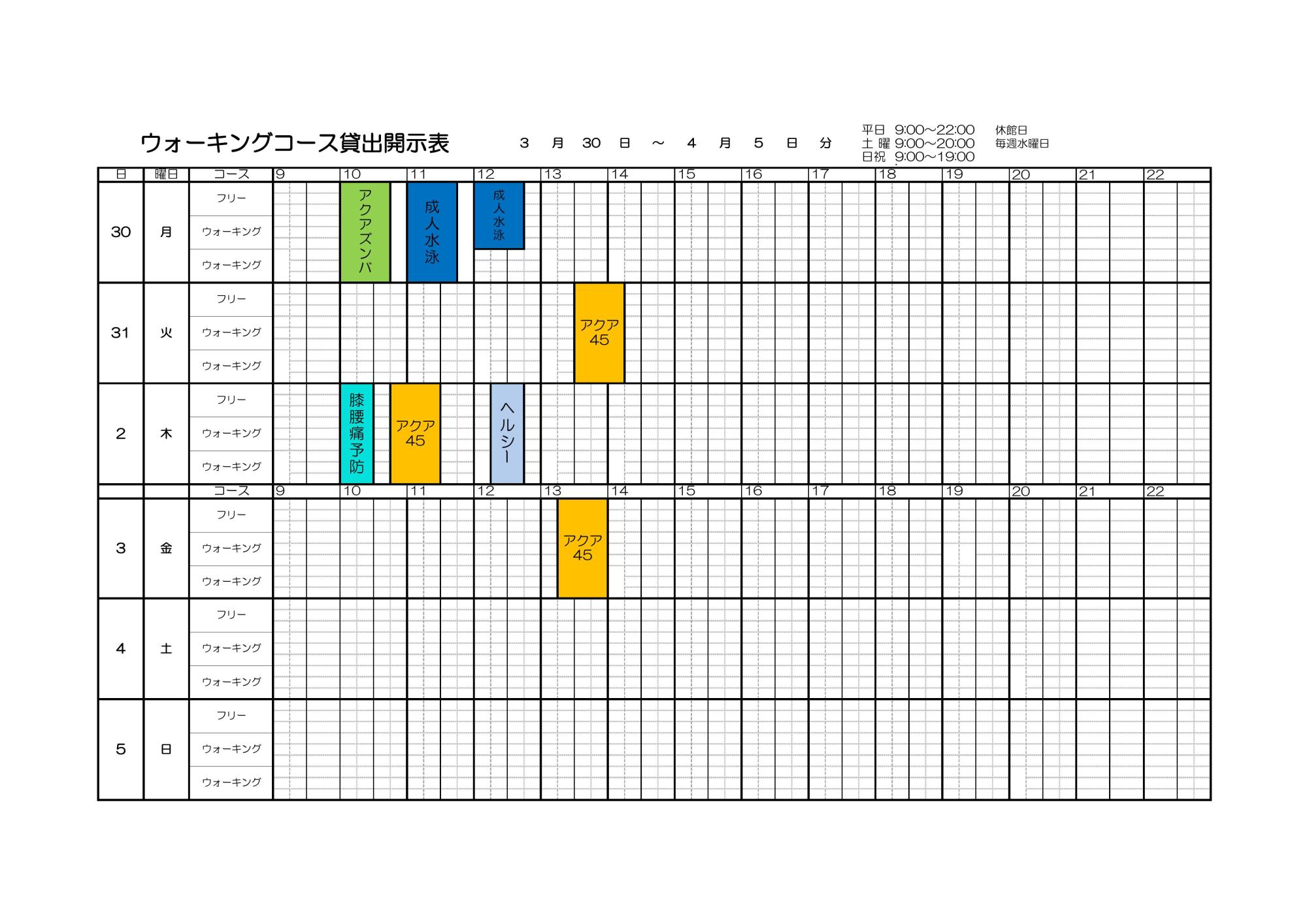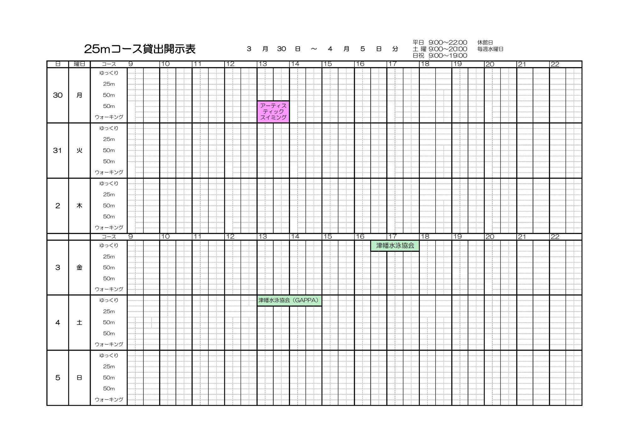 3月30日~4月5日 プールコース開示表