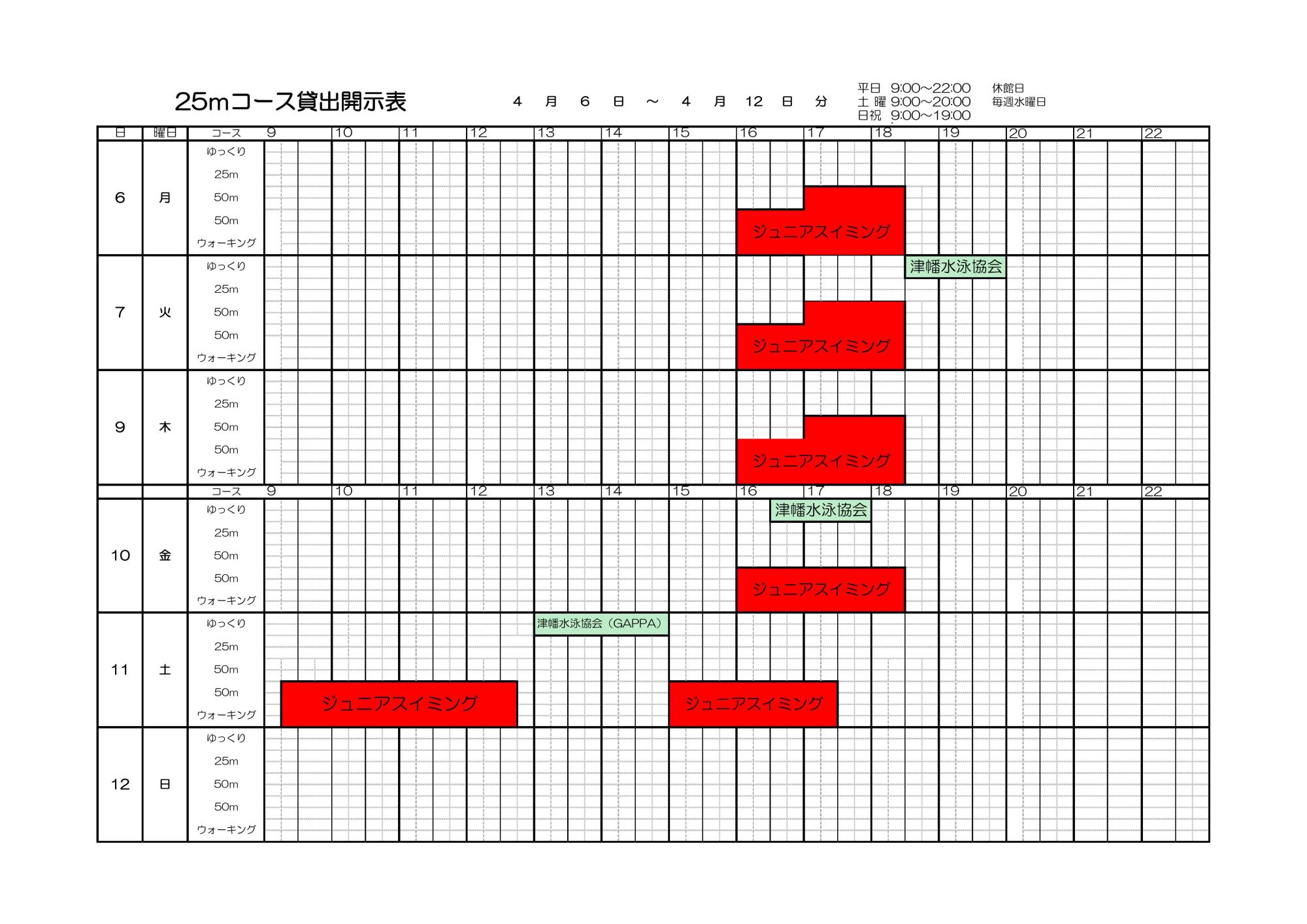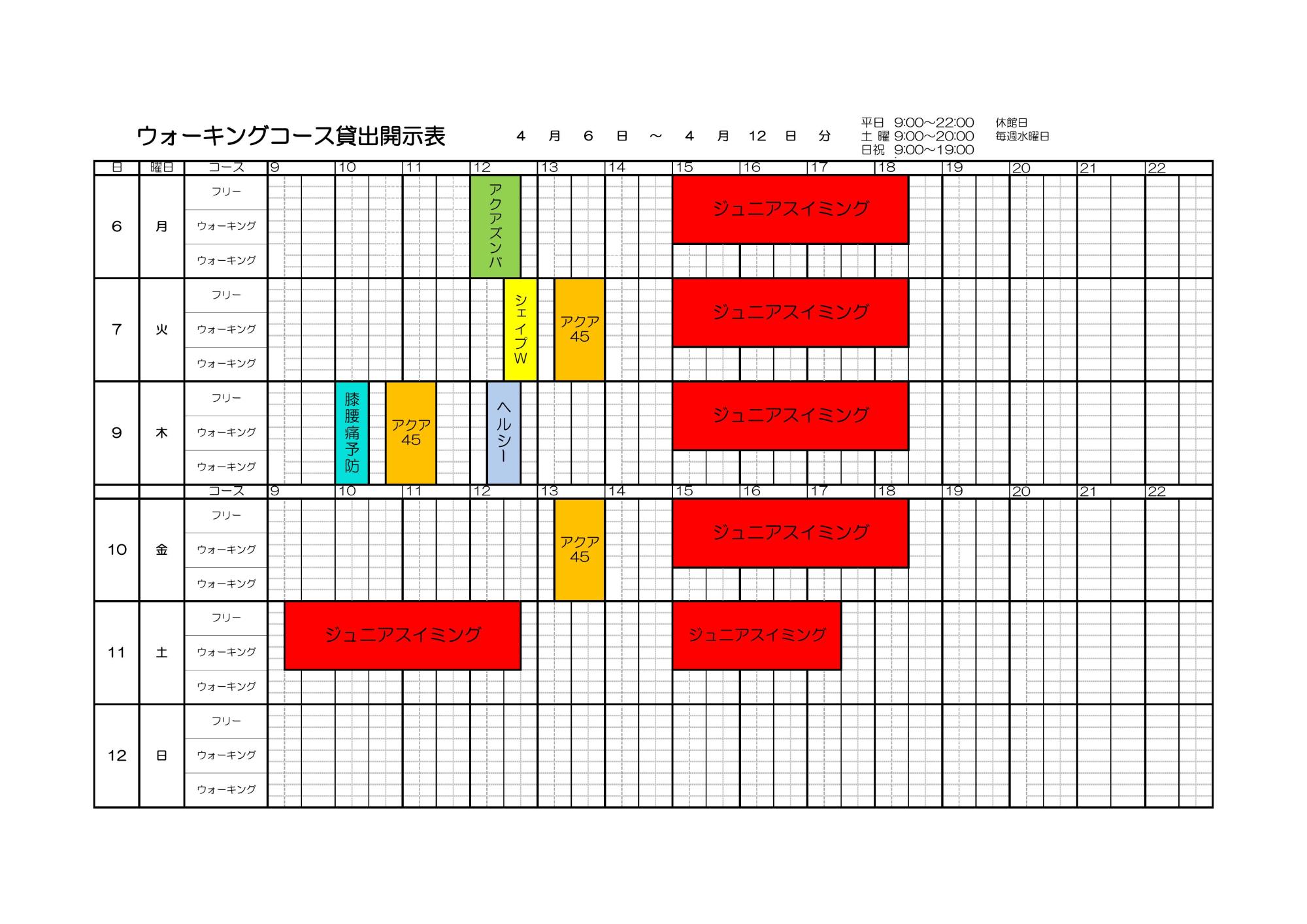 4月6日~4月12日 プールコース開示表