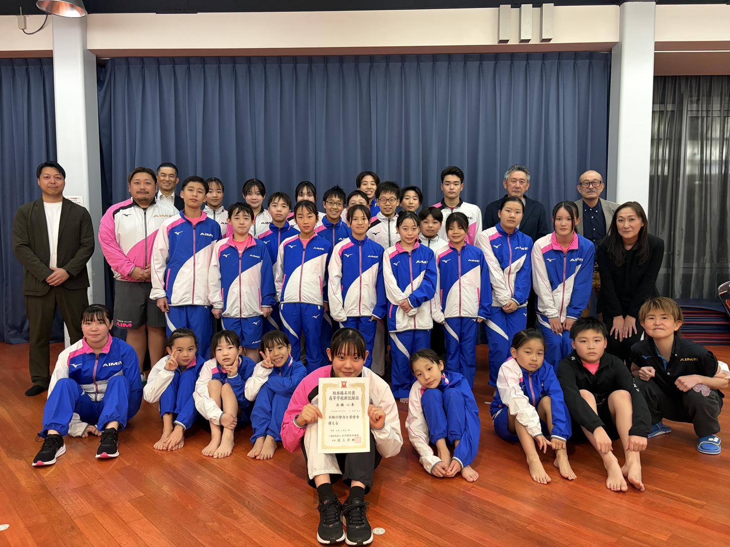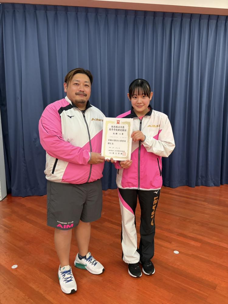 石川県短水路高校新記録証授与式が21店スーパースタジオにて行われました。