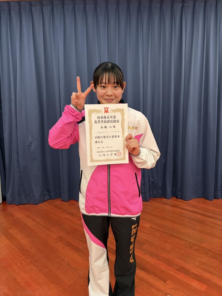 21店選手コース!!高橋心希選手!!石川県短水路高校新記録を更新しました!!100Mバタフライ!日々の努力の結果です。おめでとうございまます♪♪♪