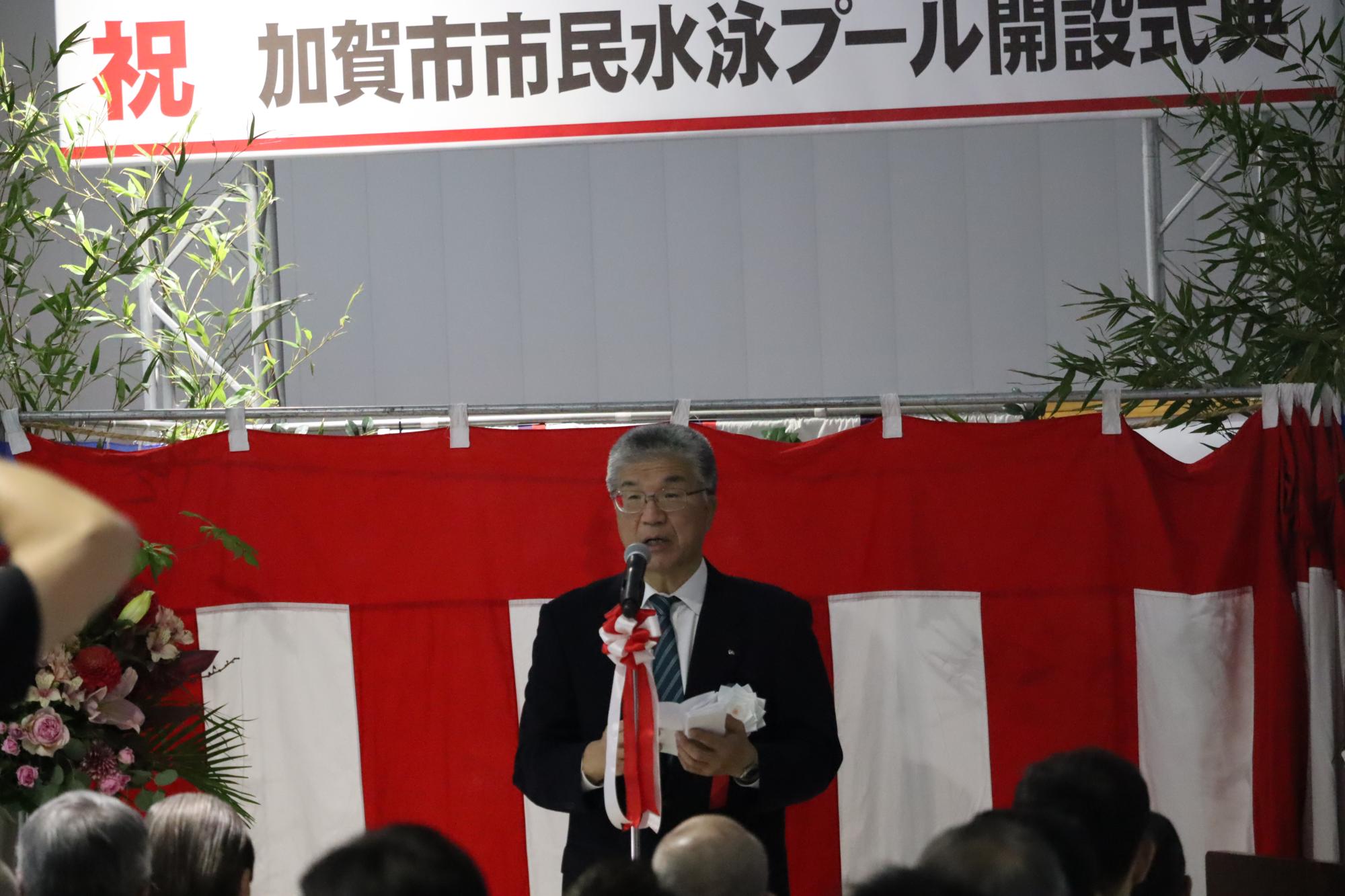 4/25に加賀市の新しい屋内プールが開館し、安全祈願祭と開設式典が行われました。